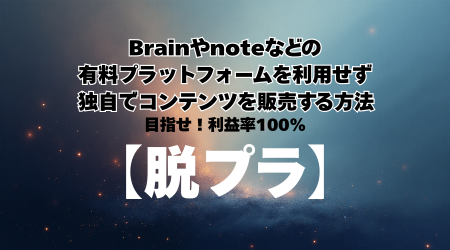 ここでは、僕が採用している独自コンテンツ販売の方法を伝授していきます。高額な有料プラットフォームから脱却して利益率を100%に近づけていく方法なので「脱プラ」と名付けました。
